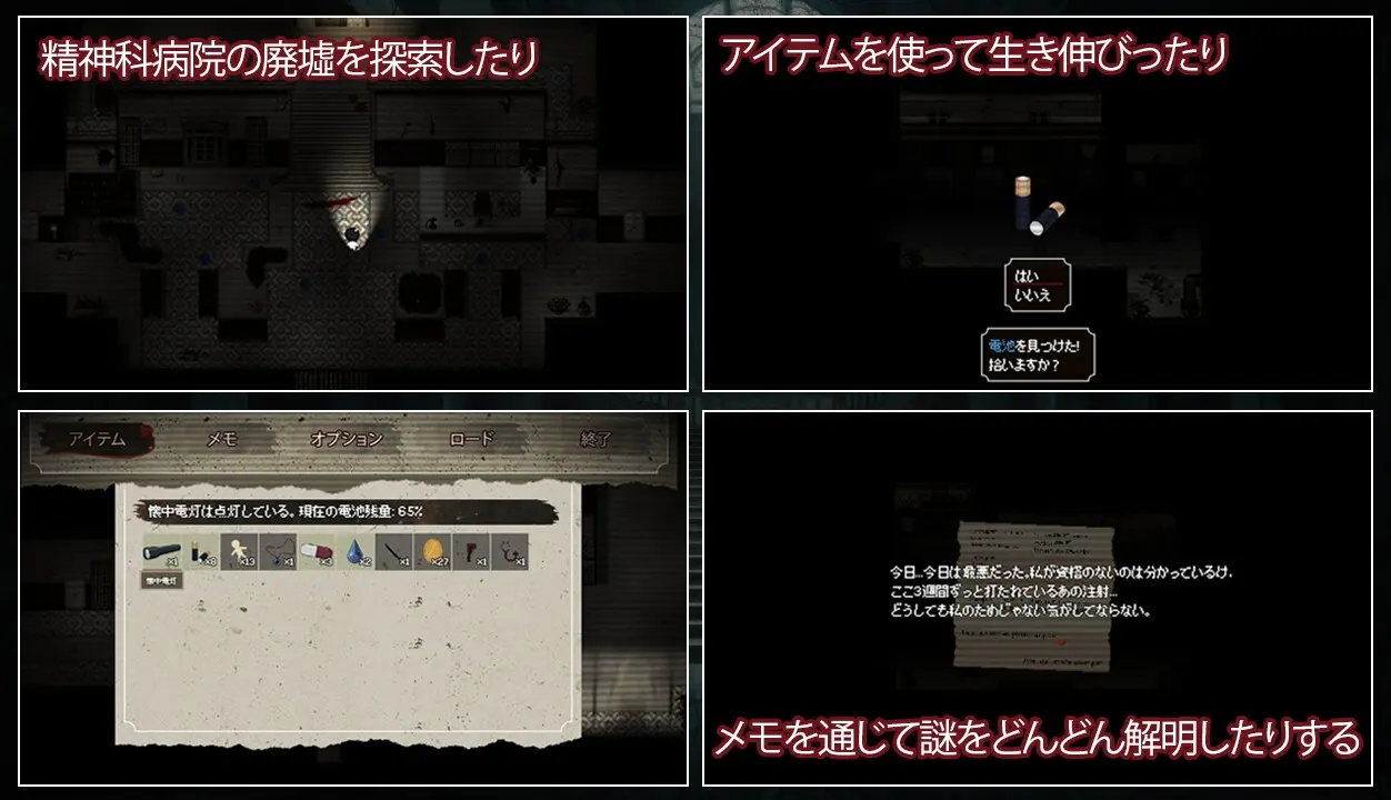 在探索的過程中,你將解開無數阻礙你前進的謎題,收集線索,最終揭開這座精神病院的秘密,以及最重要的──關於你自己的真相。