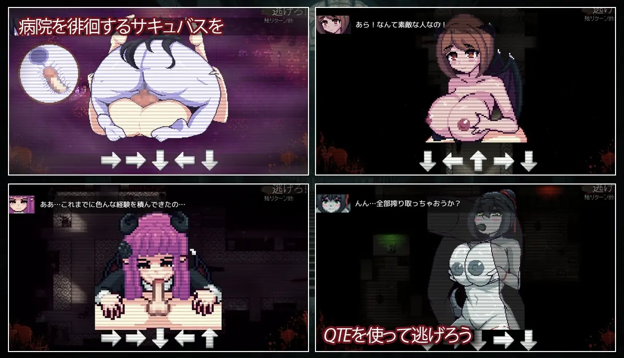 然而,你也必須提防遊蕩在院內的致命魅魔。有些魅魔會瞬間殺死你,有些會戲弄你,甚至有些看起來可能很友善……但無論如何,千萬不要相信這裡的美女。一旦遇到魅魔,唯一的出路就是──趕快逃跑!